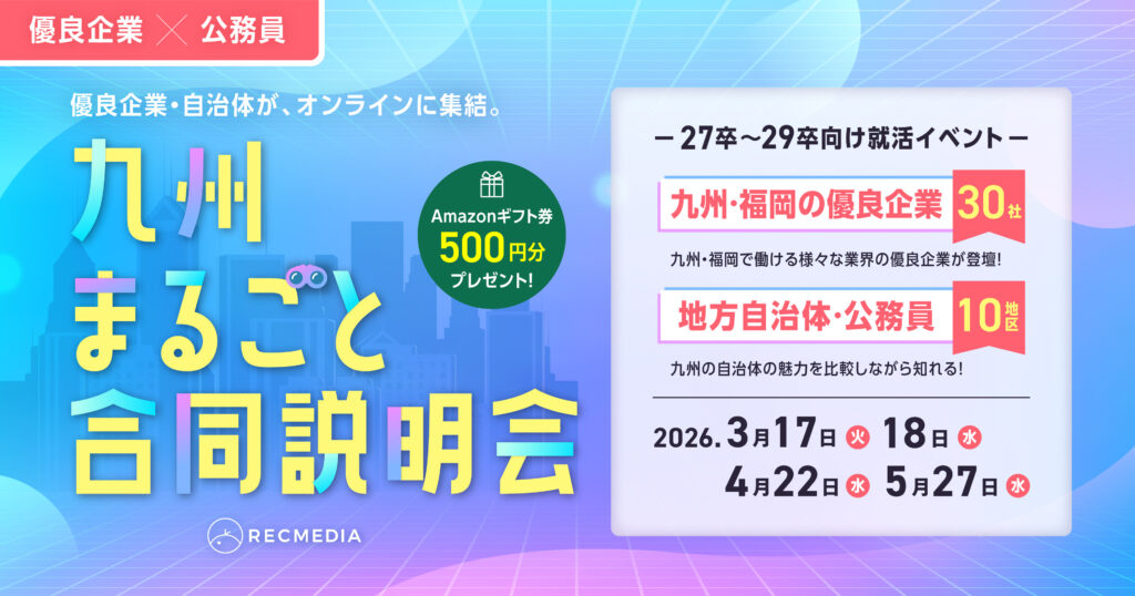 長崎市は3/18(水)13:15〜13:40に参加し、長崎市役所の仕事内容・採用案内・採用試験等について、ご説明予定です!ZOOMを使って、気軽にご参加ください!